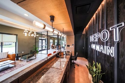 The Depot on Main is conveniently located adjacent to the Old Town district of Burleson at the northwest corner of King and Main streets, only a five-minute walk to numerous restaurants and retail stores. Inspired by the town’s historic railway, MAA implemented a modern industrial design style with black finishes, and materials such as wood, dark metal and steel warmed with brick featured throughout the space. Linear lights replicating train lights, a train depot station wall covering and subtle nods to the Old Town district of Burleson were also incorporated in the public areas through artwork and accessories.